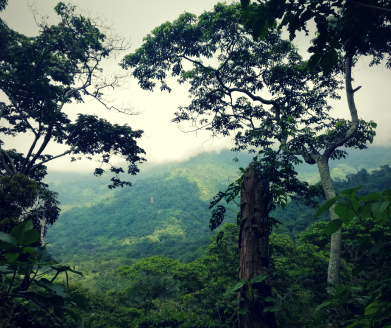 Y seguíamos, seguíamos… Y seguíamos. Poco a poco el clima también iba cambiando. Empezaba a hacer ya un poco de frío, y la niebla empezaba a ocupar el camino y paisaje. Empezamos a ver cafetales a los lados de la vía, lo que nos emocionó e hizo pensar que quizá ya estábamos cerca.